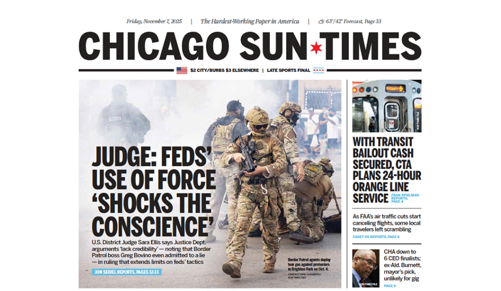 The plaintiffs in this case include: media outlets like Block Club ChicagoChicago Headline Clubthe Chicago Newspaper Guild Local 34071, the National Association of Broadcast Employees & Technicians Local 54041; individual reporters; members of the clergy; and ordinary protesters, observers, and bystanders whose free-speech has been suppressed, intimidated, or chilled under Operation Midway Blitz.