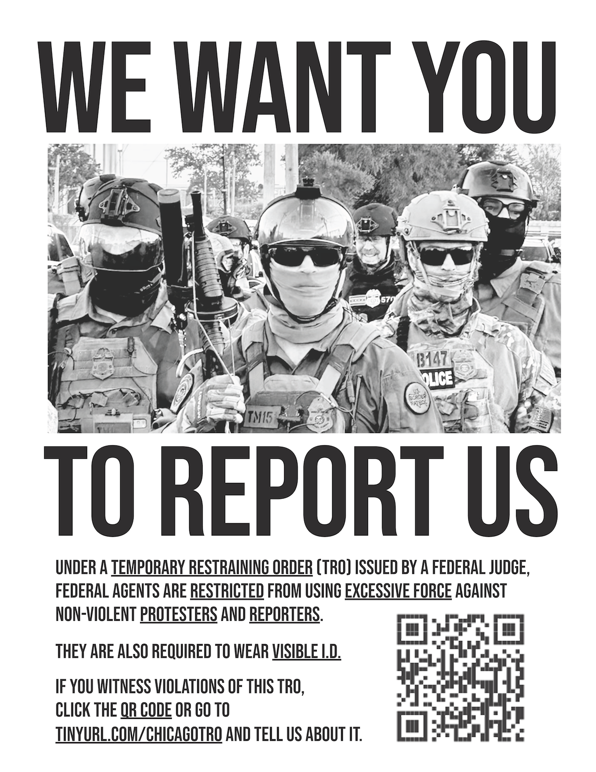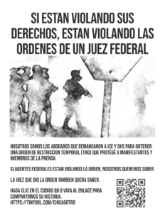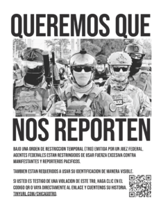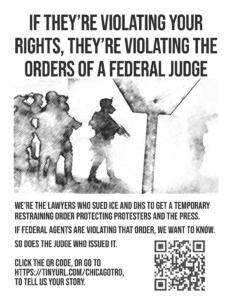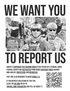 To report violations of your First Amendment rights by federal troops in Chicago or the surrounding region, go to: